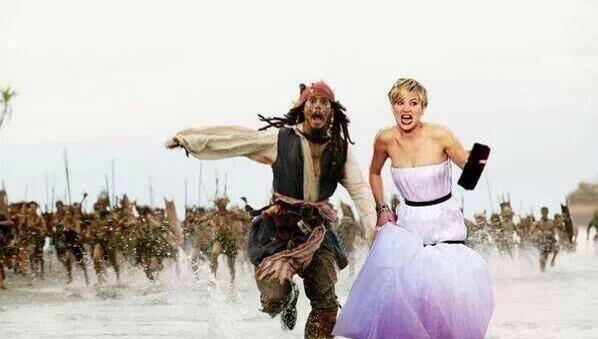 Поводом для другой волны фотожаб стала «зверская» мина актрисы, которую та состроила за спиной коллеги. Оказалось, что Лоуренс прекрасно вписывается в самые разные культурные сюжеты – от фильма «Титаник» до картины «Тайная вечеря». Пользователи выкладывают пародии с хэштегом #jlawphotobomb, для них даже завели специальный блог.