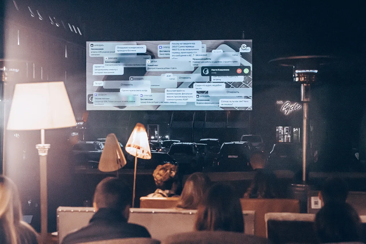 В итоге нужное место мы нашли на дизайн-заводе «Флакон». На площадке мы организовали кинотеатр и мини-бар, чтобы гости провели время с комфортом. В итоге люди могли общаться и выпивать либо смотреть фильмы, не выходя из машины.
