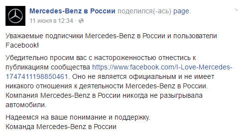 Официальные представители Mercedes в России далеко не сразу среагировали на акцию: лишь 11 июня появилось сообщение на сайте компании и в ее паблике в Facebook с предупреждением о данной акции и призывом остерегаться мошенников. "Компания Mercedes-Benz в России никогда не разыгрывала автомобили", - говорилось в сообщении.