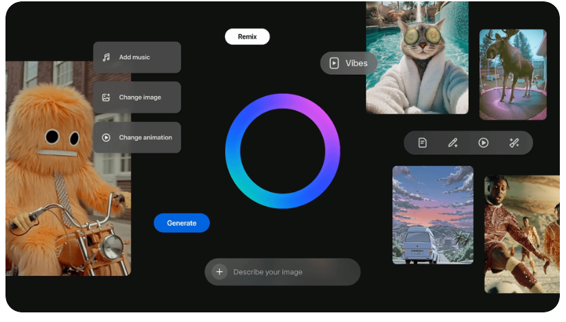 Кроме того, Meta представила Vibes. Это новая лента, демонстрирующая видеоролики с контентом, созданным искусственным интеллектом. Она позволяет делиться короткими видеороликами и создавать их с помощью ИИ. Со временем алгоритмы Meta начнут персонализировать контент.