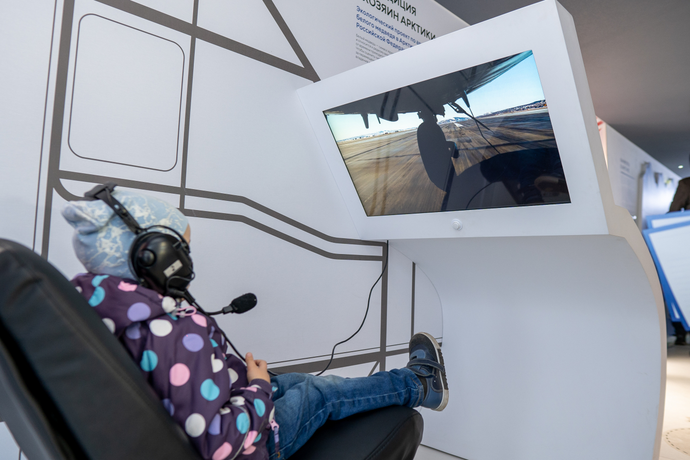 Для зоны, посвящённой экспедиции, использовали видео, снятые фондом во время авиаучёта медведей: просматривая их, исследователи подсчитывают количество животных в регионе. Белые медведи остро реагируют на перемены климата, поэтому по сокращению их численности отслеживают экологические изменения. Несмотря на то, что такие съёмки делают с помощью беспилотников, было решено создать имитацию кабины самолёта и дать зрителю возможность почувствовать себя настоящим учёным. Также в этом блоке постарались объяснить, как каждый может повлиять на состояние региона, рассказать о наиболее важных инициативах в области устойчивого развития Арктики.