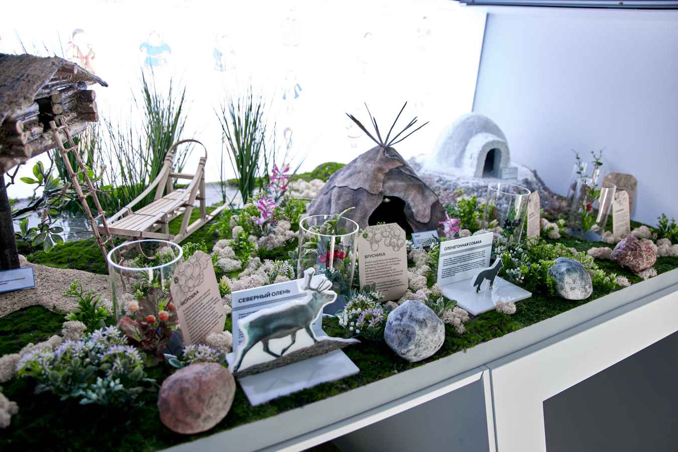 Чтобы познакомить посетителей с другими обитателями Арктики, была организована зона погружения с интерактивными фигурами животных и макетами домов коренных народов. Фигуры животных рассказывают о своём значении для жителей тундры; ягоды в колбах — о своих полезных свойствах и рецептах блюд, в которых они используются. Особенностью этой зоны стали «говорящие камни», при взаимодействии с которыми можно услышать легенды и песни от жителей Арктики.