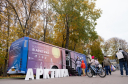 Пространство. Чтобы избежать давки внутри автобуса, посещение выставки было организовано в группах по 15 человек, в ограниченный отрезок времени. Для посетителей, чья очередь ещё не подошла, рядом с автобусом были организованы мастер-классы и другие активности.