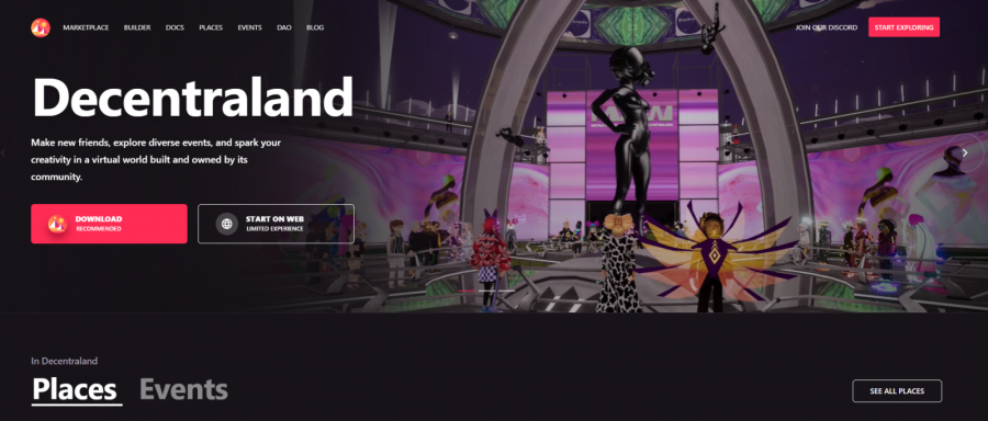 В Decentraland можно настраивать внешний вид аватаров, проектировать и строить собственные виртуальные пространства, включая дома, магазины и другие сооружения, а также свободно перемещаться по карте между землями.