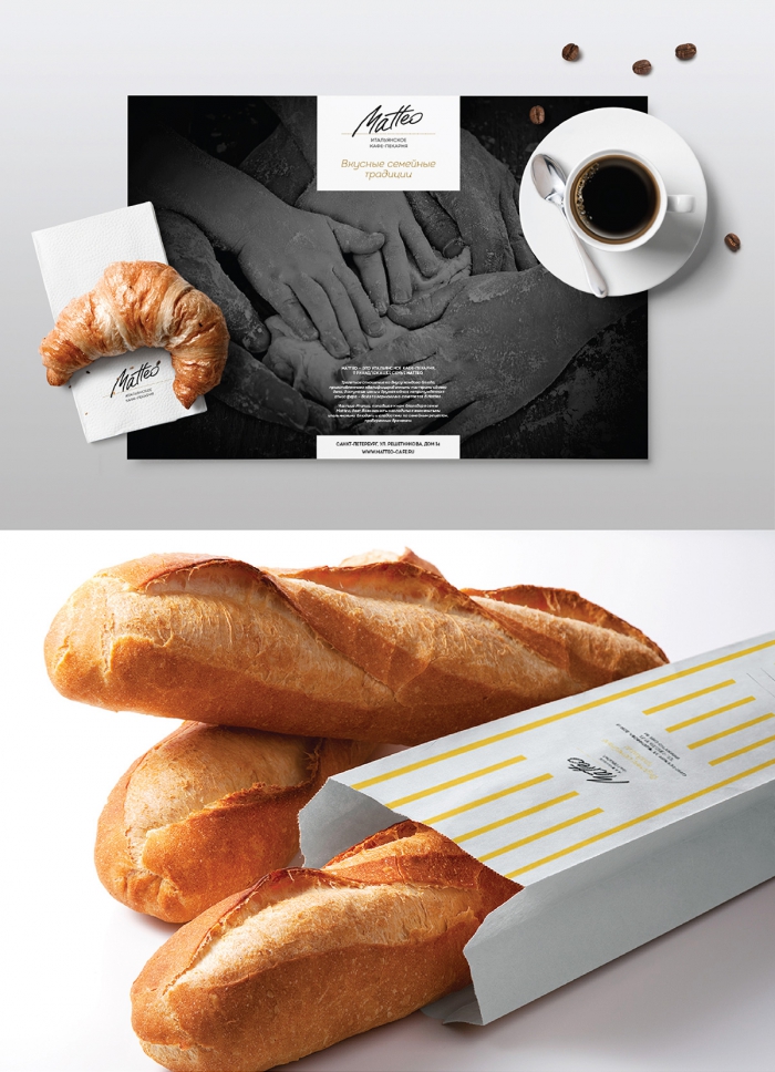 Команда «Терминал дизайн» разработала бренд итальянских кафе-пекарен Matteo. В основу креативной концепции марки легла история семьи из Италии с характерной фамилией Matteo.