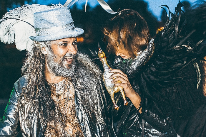 В 22:00 начнется торжественное театрализованное шествие к лесному озеру – парад-алле, где каждый сможет показать свои костюмы во всем их великолепии. Процессия увлечет всех участников фестиваля в зачарованный лес, где они смогут насладиться долгожданным шоу на берегу озера, подготовленным художницей Марго Трушиной, командой Sila Sveta и режиссером Жу Монтвилайте. Что предстанет перед гостями, организаторы держат в секрете, но известно, что обитателей райского сада ждут настоящие чудеса: на лесном озере появится искрящийся водопад, вокруг которого соберутся фантастические создания невиданной красоты, и гости станут непосредственными участниками мультимедийного перформанса по мотивам легенды о сотворении мира, который будет разворачиваться в течение волшебной ночи вокруг мистического озера.
