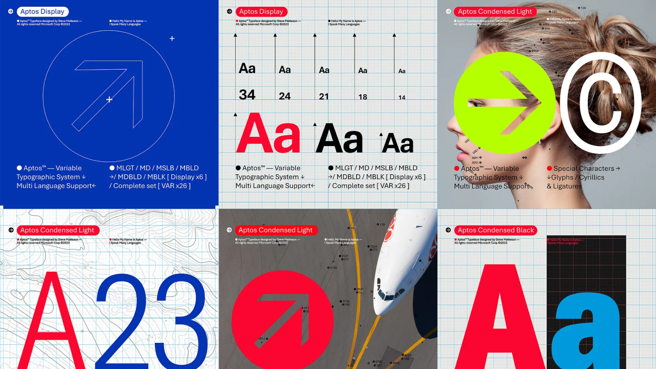 Новый шрифт не имеет засечек, в нём преобладают простые и ровные штрихи, поэтому он легко читается. «Aptos, состоит из различных геометрических форм, он смелый, чёткий и сдержанный. Он сочетает множество разных языков и тонов», — говорится в его описании.