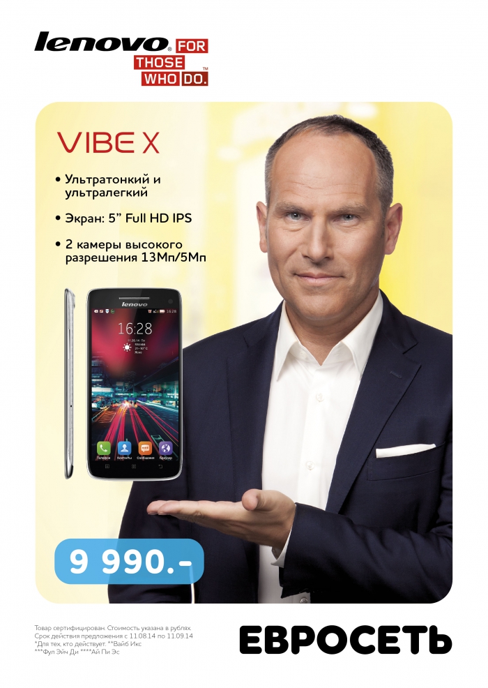 Популярный комик, шоумен и телеведущий Михаил Шац начал маркетинговое сотрудничество с мобильным ритейлером «Евросеть». Он появился в новом рекламном ролике компании, продвигающем смартфон Lenovo Vibe X.