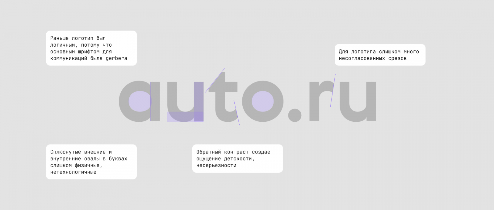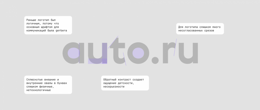 Предыдущий лого, который создала команда «Авто.ру», хорошо работал в своих реалиях, но в мельчайших нюансах стал выглядеть устаревшим. Мешала несовершенная геометрия букв и обратный контраст (когда горизонтальные линии в буквах толще вертикальных) — в этом чувствовалась некоторая «детскость».