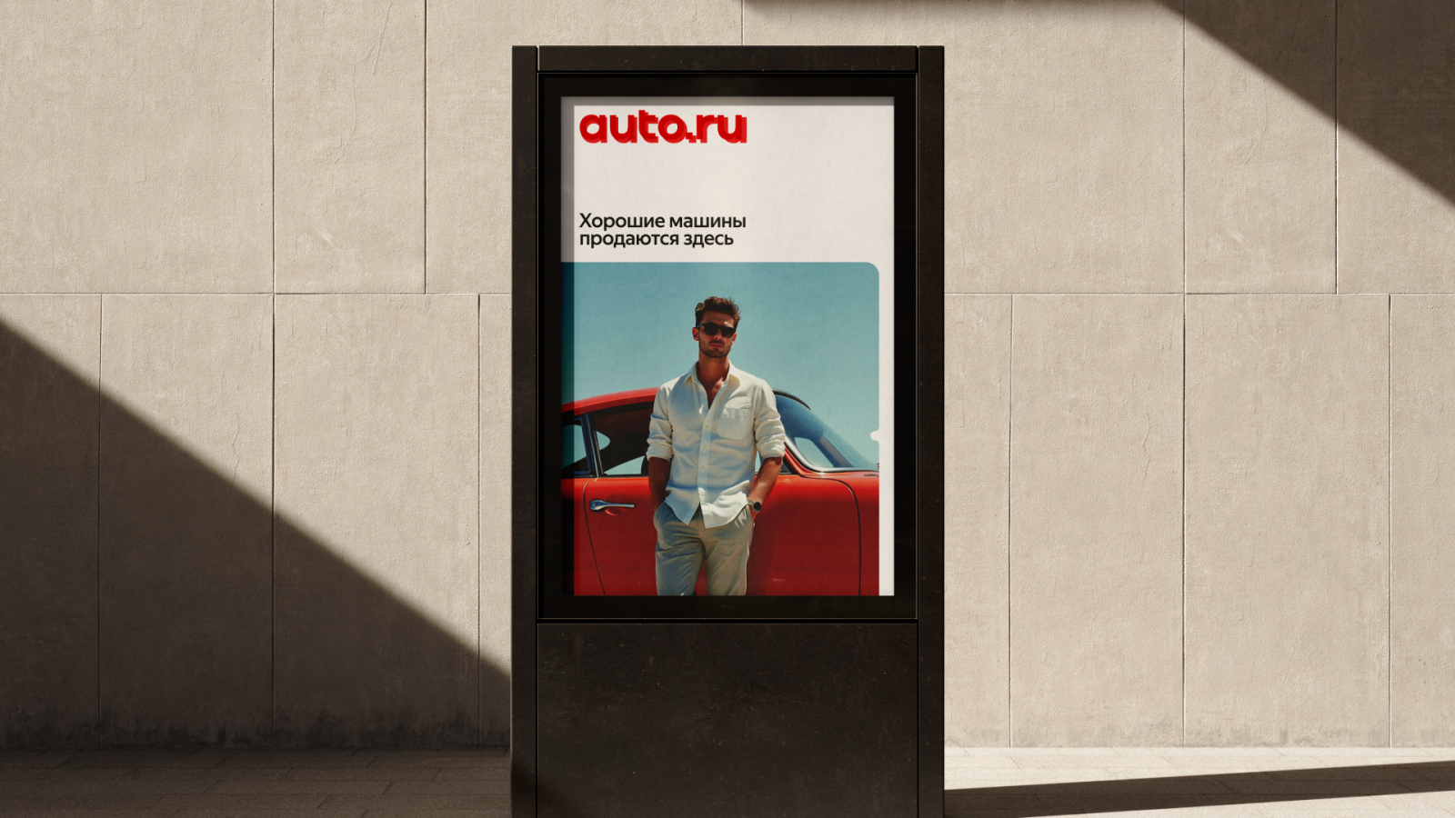 Компания провела редизайн инхаус. Была поставлена задача изменить айдентику, не меняя ее. Надпись Auto.ru и силуэт машины — визуал, закрепившийся с 1996 года: на старте это был автомобиль Бенца. Постепенно айдентика двигалась в сторону минимализма и мгновенной узнаваемости — логотип несколько раз переосмысливали, доводя до плакатной ясности.