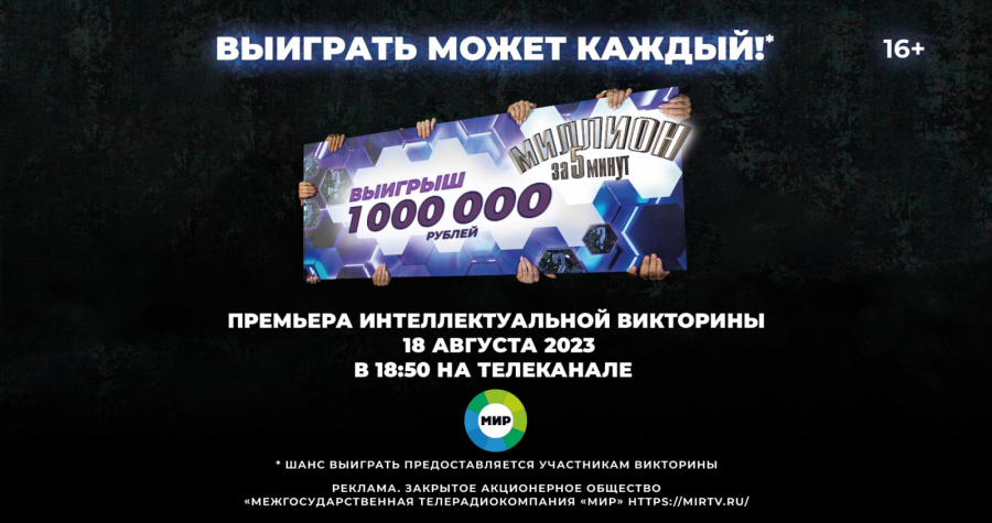 18 августа 2023 года в 18:50 на телеканале «Мир» стартует новое шоу «Миллион за 5 минут». Воспользуемся поводом, чтобы узнать, какой вы миллионер и ждёт ли вас победа в интеллектуальной телевикторине. Sostav подготовил тест с вопросами, на которые отвечают игроки. Пройдите его и проверьте свои силы.