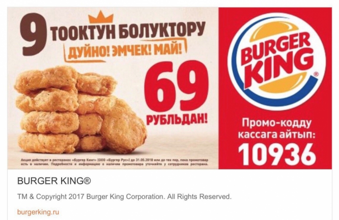На самом деле, по сообщениям представителей бренда, «Бургер Кинг», желая быть ближе к своему потребителю в Киргизии, создал рекламное сообщение на языке республики, но допустил в нем одну, но значимую ошибку.