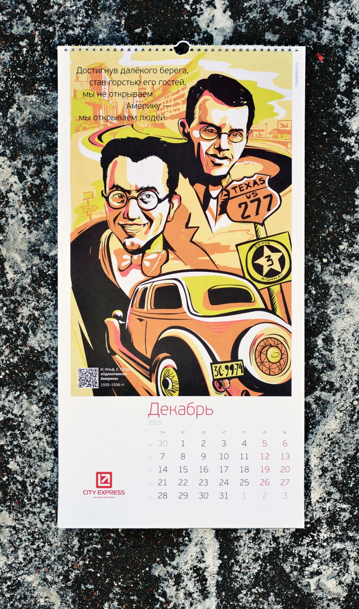При этом тексты календаря, в отличие от иллюстраций, были выполнены в едином ключе: это рифмованные зарисовки с отсылкой к сюжету того или иного произведения и одновременно — рассказ City Express о своем отношении к дорогам, о собственном пути.