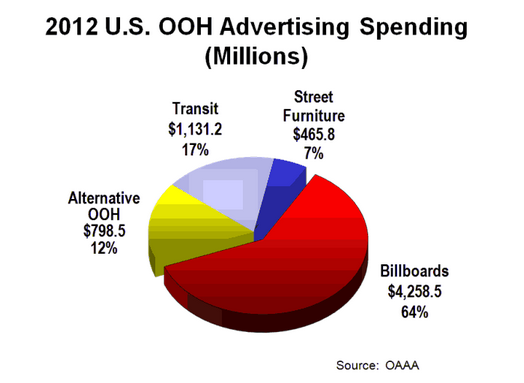 Распределение рынка OOH в США по данным Outdoor Advertising Association of America (OAAA) за 2012 год