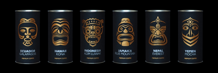 Графика в сочетании с формой упаковки (тубус) и технологическим решением (тиснение фольгой, дизайнерская бумага) создают образ премиального продукта. Общая упаковка набора выполнена из дерева. Каждый сорт кофе из данной коллекции производится в определенной местности и имеет ярко выраженный индивидуальный вкус. При разработке дизайна авторы вдохновились мистическими образами Тики (Гавайи), Баронга (Индонезия), культуры Ла-Толито (Эквадор), Тайно (Ямайка), Махакалы (Непал) и Фурисии (Йемен).
