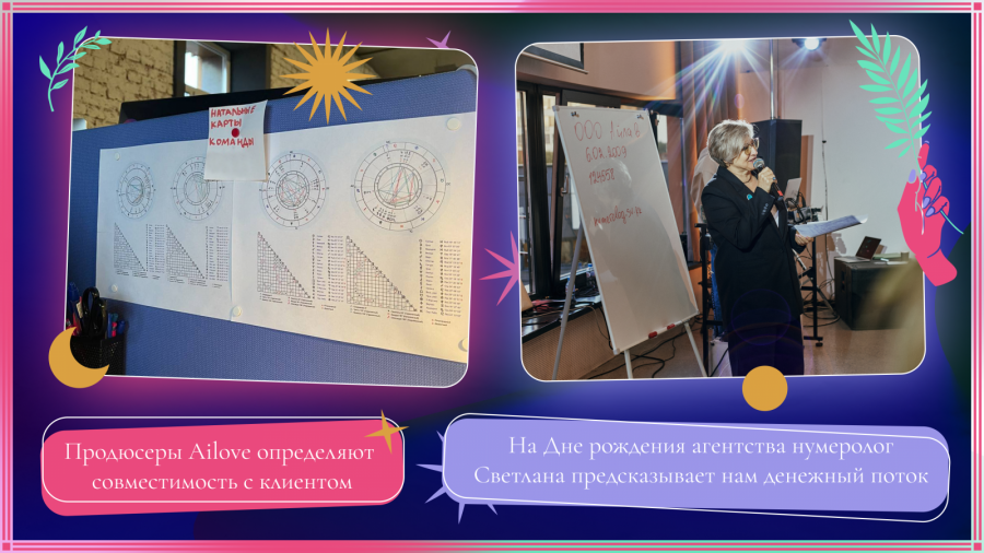Таким образом компании создавали в своих каналах коммуникации безопасное пространство для аудитории, а последняя, в свою очередь, начинала больше доверять в ответ и проявлять лояльность. Мы в Ailove тоже нередко обращались и продолжаем обращаться к мистике, как в работе с контентом, так и внутри команды. Например, вместе с коллегами стоим в очереди к нумерологу на корпоративе или готовим натальную карту одному из клиентов.