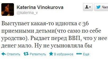Журналистка «Газеты.ру» прокомментировала это выступление в своем Twitter, назвав Наталью Серганову «идиоткой».