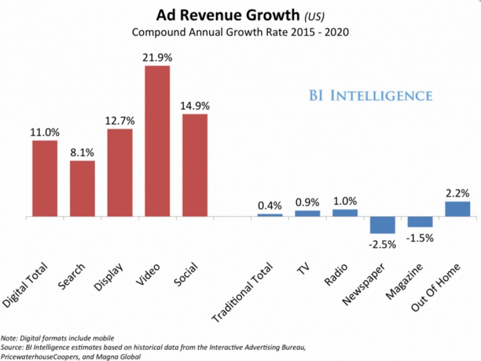 Это, в свою очередь, приведет к тому, что к 2020 году структура рекламных расходов брендов перераспределиться в пользу digital. Больше всего потеряют традиционные СМИ, особенно газеты и журналы.