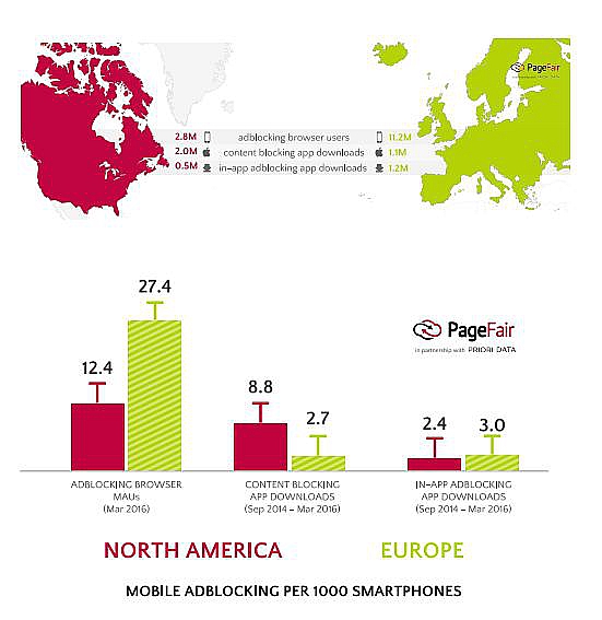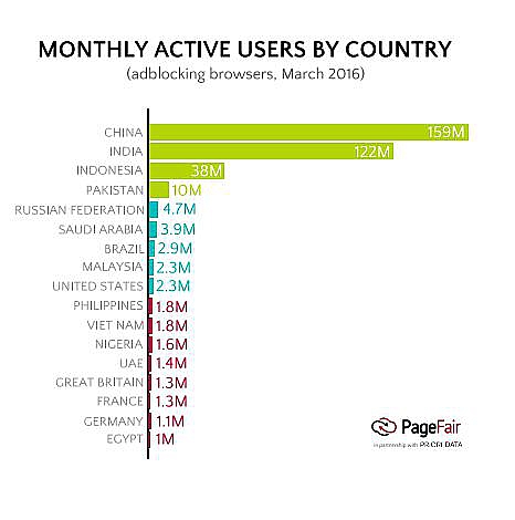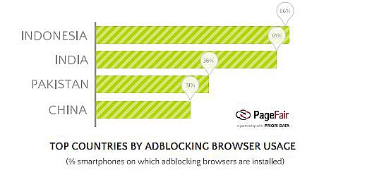 По оценкам исследователей, мобильных блокировщиков в два раза больше, чем десктопных. Они особенно популярны в развивающихся странах вроде Китая, Индии, Пакистана и Индонезии. В Азиатско-Тихоокеанском регионе мобильную рекламу блокируют 36% пользователей смартфонов. Это связано с тем, что мобильный интернет в странах третьего мира довольно дорог. Блокировщики приносят выгоду за счет экономии трафика и ускоряют загрузку страниц, что актуально для бедного населения.