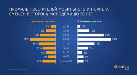 Nielsen и Mail.ru Group представили совместное исследование по мобильному интернету в России. Соцсети в два раза популярнее чем веб-серфинг, а основными сервисами мобильной аудитории в вебе являются почта (11%) и онлайн-издания (10%). Мобильный сегмент Рунета тормозит неадаптированность сайтов – 67% не имеют мобильную версию и приложение, а рекламодателей смущает отсутствие универсальной панели мобильных измерений.