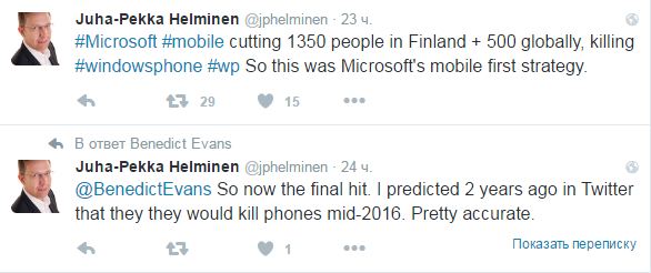 Хотя корпорация заявляет, что продолжит поддерживать смартфоны Lumia, эксперты говорят о фактическом сворачивании мобильного эксперимента. Гендиректор Microsoft Сатья Наделла назвал направления, на которых сфокусируется команда: работа с предприятиями, ценящими безопасность и управляемость, разработка инноваций для различных устройств и облачных сервисов для мобильных платформ.