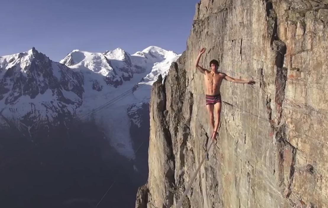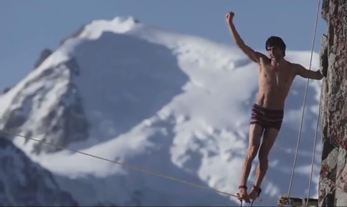 В центре захватывающего дух сюжета – экспедиция двух экстремалов в Альпах, которые перебираются с вершины на вершину. Чтобы взять новую высоту, они протягивают канат над пропастью между скалами, после чего раздеваются до нижнего белья и идут по канату, привязав к ногам страховку.