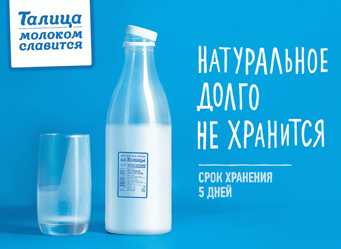 Напомним, что в ролике «Натуральное долго не хранится» демонстрируется, что «Талицкое молоко» не может долго храниться: с одной стороны, настоящее молоко годно к употреблению только пять суток, а с другой – оно обладает таким чудесным вкусом, что его немедленно выпивают. По мнению Союзмолока, сравнение продукции «Талицкого молзавода» с молоком других производителей по критерию натуральности и утверждение «Натуральное долго не хранится» являются некорректными.