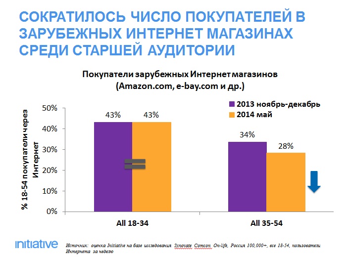 Введения таможенных пошлин привели к снижению покупательской активности в зарубежных интернет-магазинах: на 6% снизилось количество покупателей среди старшей аудитории (35-54 года); однако среди более молодой аудитории популярность шоппинга в зарубежных интернет-магазинах не изменилась.