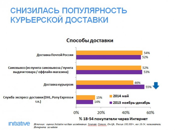 Что касается получения товаров, «Почта России» и самовывоз стали самыми популярными способами доставки, при этом востребованность курьерских услуг снизилась.