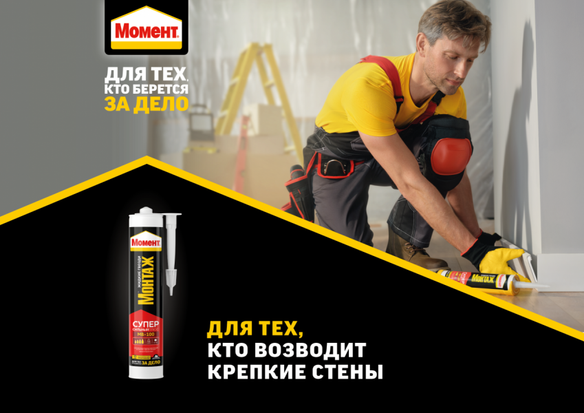 Начинать новое всегда сложно: поставить первый мазок на белом холсте, приступить к сборке купленной мебели, запустить строительные работы на объекте — все это требует времени, чтобы собраться. В рамках рекламной кампании «Момент» продвигает всю линейку продукции в целом, строя имидж универсального бренда, одновременно подходящего для бытовых работ, хобби и ремонта.