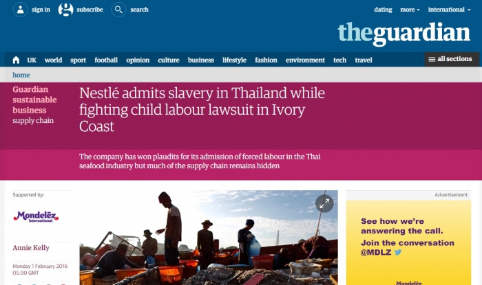 В минувший понедельник издание The Guardian опубликовало материал, в котором обвинил крупнейшего в мире производителя продуктов питания Nestlé в использовании рабского труда в Таиланде и детского труда в Кот д’Ивуар.