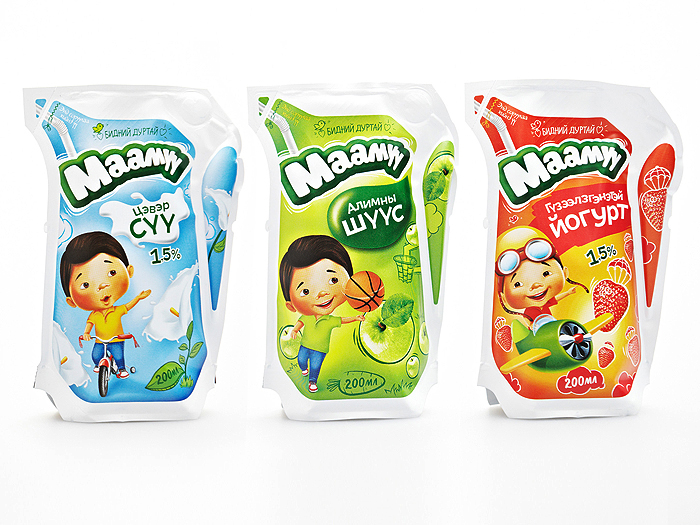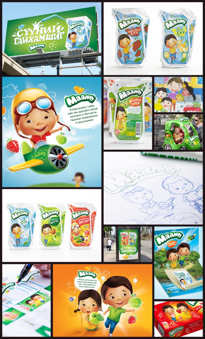 Название «Маамуу» в переводе с монгольского означает «малыш». Концепция бренда молочной и соковой продукции для детей нашла отражение не только в названии, но и во всех рекламных коммуникациях, осуществлённых через персонажей, близких и понятных для детской целевой аудитории. Герои бренда, мальчик Сергелен и девочка Тсовоо, помогают коммуницировать основные преимущества марки. Сергелен символизирует силу и энергию, которые дают ребенку молочные продукты, а Тсовоо рассказывает о полезных веществах, витаминах и минералах, которые ребенок получает, ежедневно употребляя натуральные соки и молоко.