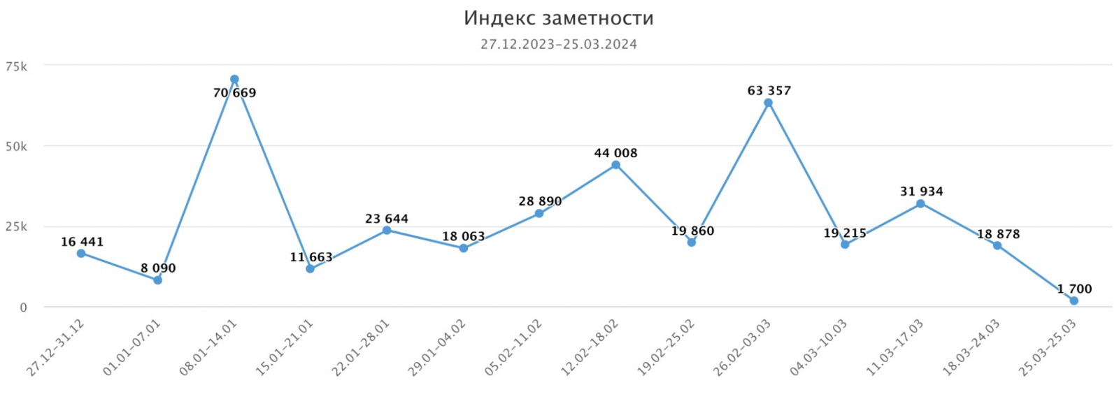 - Индекс заметности — показатель, который учитывает влиятельность СМИ и роль компании или персоны в публикации. Чем выше индекс заметности источника, тем чаще его цитируют другие СМИ и тем он авторитетнее.