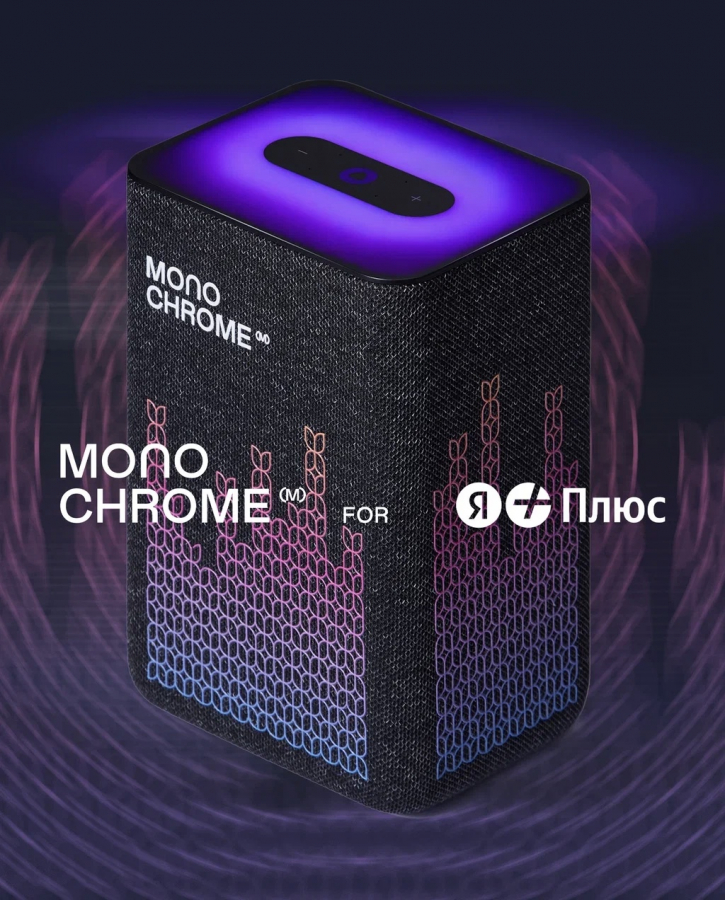 Лимитированную серию колонок «Яндекс Станция 2» создали как арт-объект коллекции. Фирменный паттерн Monochrome в цветах градиента «Яндекс Плюса» создаёт силуэт эквалайзера на каждой стороне устройства.