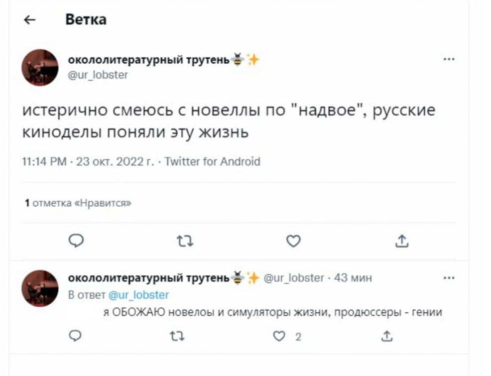 Кроме того, пользователи отмечали нестандартный подход к продвижению сериала «Надвое», утверждая, что именно после прохождения игры захотели посмотреть, чем история закончилась на самом деле.