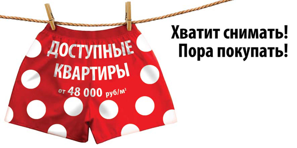 После этого вышли яркие игровые ролики «Speed Dating», «Свадьба», «Доступные квартиры». Они сразу нашли отклик в сердцах зрителей, вызвав массу восхищенных отзывов, и за счет своей неординарности даже добились призовых мест на конкурсах рекламы. К сожалению, эта оригинальность принесла не столь продуктивный результат в плане увеличения объема продаж, на который мы так рассчитывали. После этого мы поняли, что надо что-то менять, вырабатывать свой собственный стиль, чтобы нашу рекламу нельзя было спутать ни с какой другой. Вспомнили первые размещения, провели анализ и решили, что будем использовать красный фон.