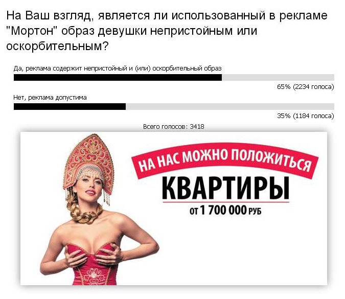 — Из последнего — девушка с кокошником. Ее заметило даже УФАС, разместив на своем сайте опрос об этичности нашей рекламы (на 14:33 66% проголосовавших согласны с тем, что реклама оскорбительна — прим. ред). На данный момент голосование еще не завершено, поэтому результат предсказать пока сложно. Но при любом стечении обстоятельств мы будем отстаивать этичность нашей рекламы, так как считаем, что она не нарушает законодательство РФ и никоим образом не нарушает рамки дозволенного. Примеров подобной рекламы вы можете наблюдать множество в любой сфере деятельности. Наша задача — привлечь внимание, чего мы и добились.