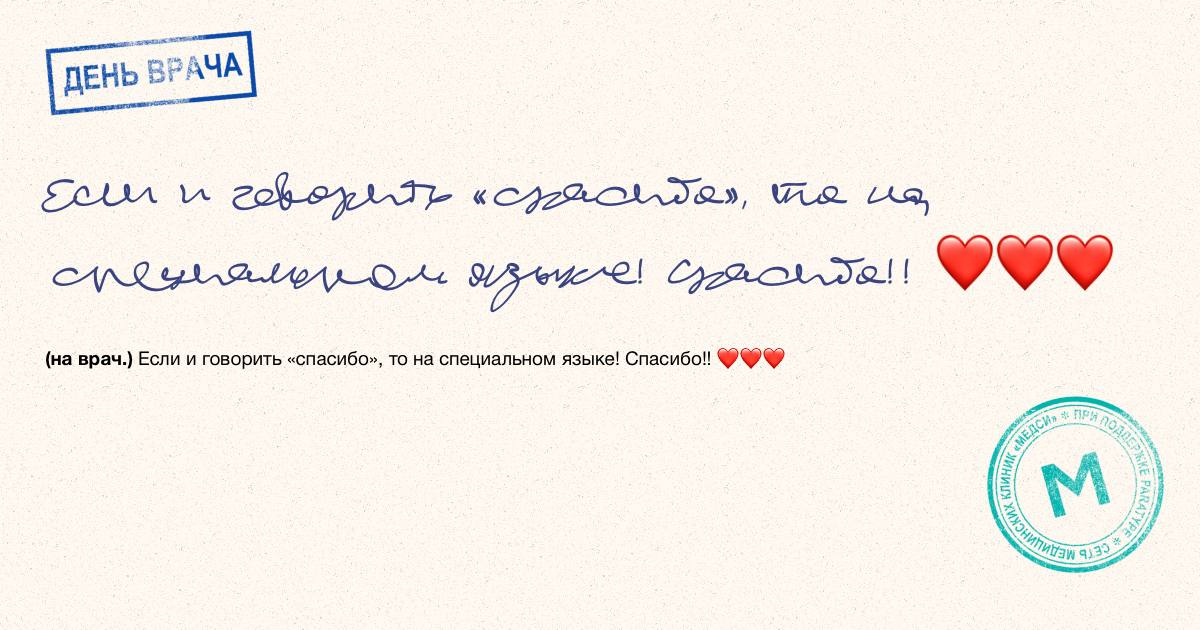 Мы надеемся, что наш проект станет своего рода мостиком к пониманию врачебного почерка, о котором так часто шутят, особенно в последнее время. Кроме того, для нас этот проект стал отличной возможностью креативно поздравить врачей с праздником, используя привычные для всех ассоциации, связанные с их профессией.