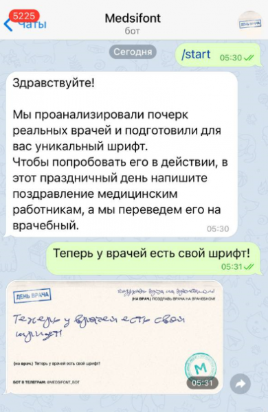 Мы решили разработать специальный шрифт, который является собирательным образом реальных почерков сотрудников «МЕДСИ», чтобы дать возможность пользователям написать поздравления и перевести его на врачебный язык.