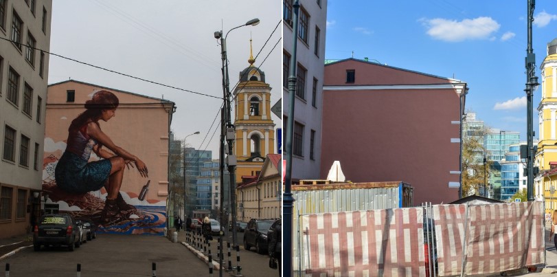 11 сентября телеграм-канал «Московские новости» рассказал о том, что рабочие закрашивают четырехэтажный пейзаж на фасаде дома по улице Гиляровского. Это граффити было создано около семи лет назад московским художником Владимиром Гупаловым (по прозвищу Nutk), чьи работы выставляются в некоторых городских галереях.