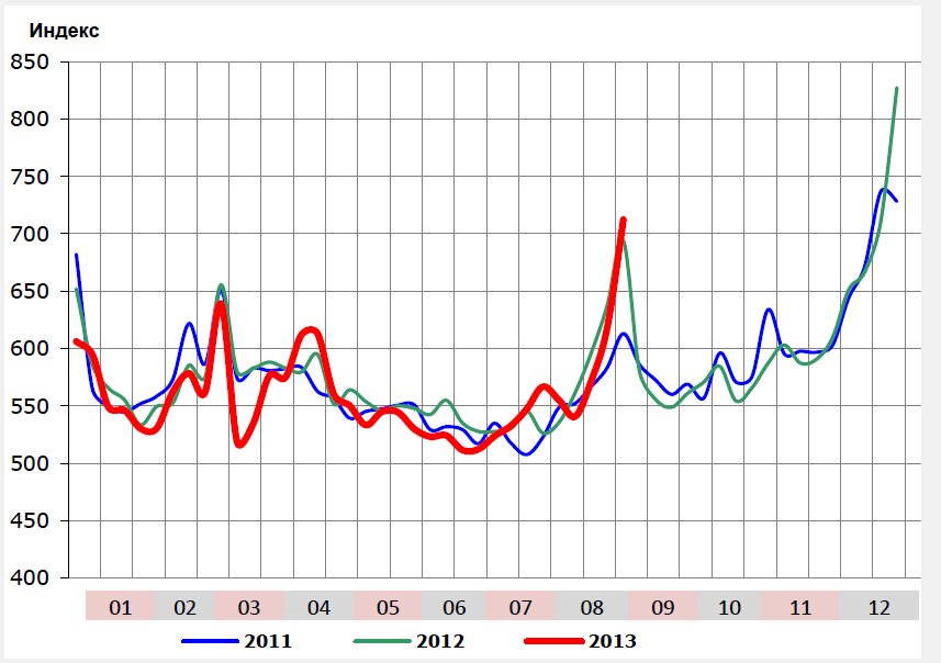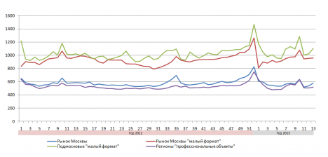 Традиционный спад посещаемости московских «малых объектов» можно объяснить двумя факторами: удовлетворение спроса людей, отъезжающих в отпуск в «крупных» объектах Москвы и выездами за город, на дачу, что вызывает повышение спроса объектов малых форматов Подмосковья. Это и объясняет отсутствие падения спроса в Подмосковье в летний период, характерного для Москвы: