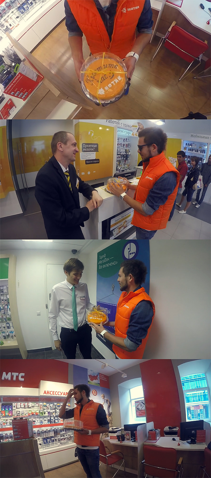 Также в рамках акции маркетинговый отдел телеком-оператора отправил своих сотрудников в офисы конкурентов - Tele2, "Билайн", МегаФон, МТС и др. Представители "Мотива" лично извинились перед соперниками, подарив работникам тортики.