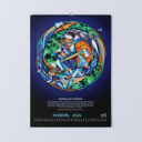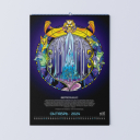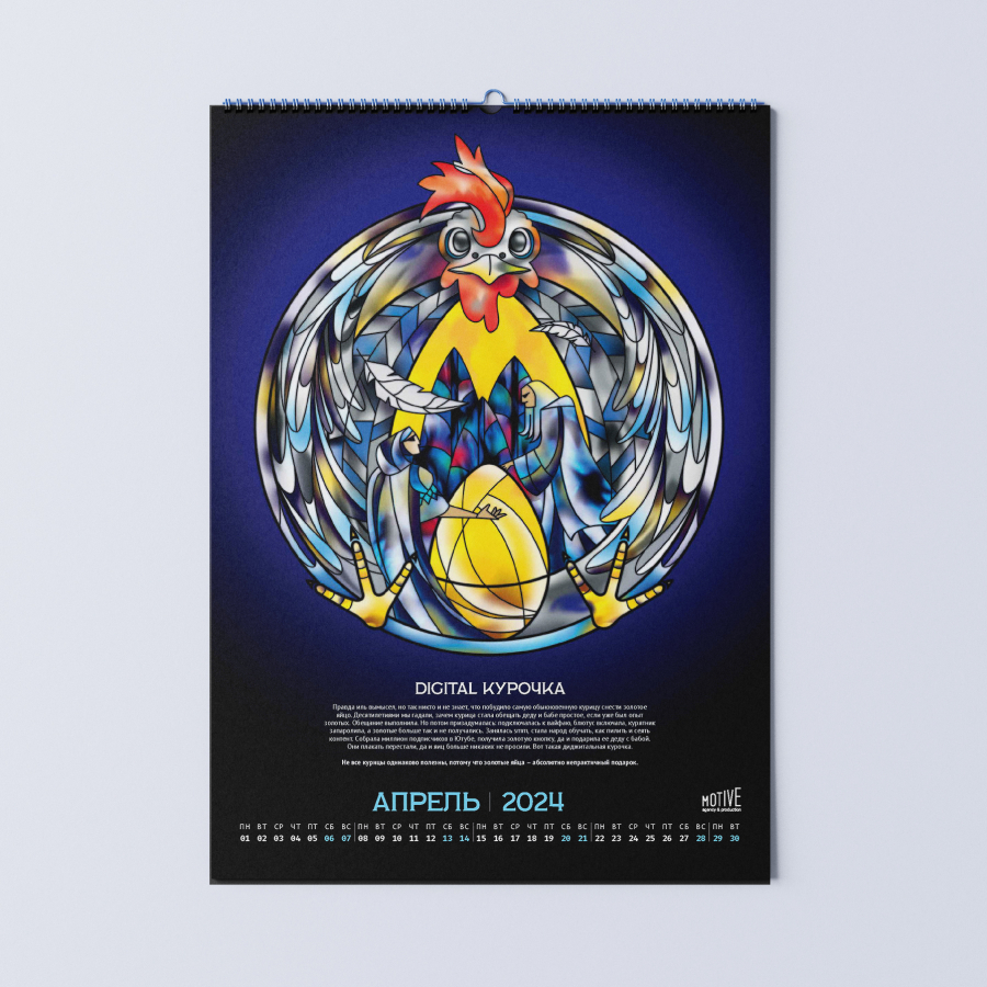 Человек, знакомый с миром искусства, сможет найти в этом календаре элементы готики и средневековья, которые оригинально вписаны в круг с отсылкой к художнику Альфонсу Мухе. Вся эта эклектика вплелась в узнаваемые сюжеты: «Кибербок», «По Щучьему умилению», «Digital курочка», «3D-снегурочка», «Царевна Тендеровна», «Блогер Маша», «Царевна-душка», «Бункер овощной», «Сестрица и братец в метавселенной», «Берлогахаус», «Роллы из топора» и «Киберкощей».