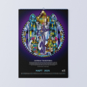 Календарь решён в духе советских иллюстраций с отсылкой к живописи начала 20-го века и характерному для того времени стилю ар-нуво. В календаре использованы яркие краски с присущей витражной технике свечением, где стекла витражей светятся изнутри.