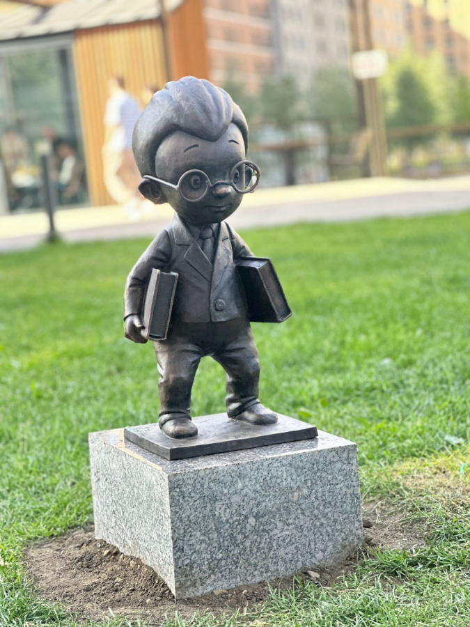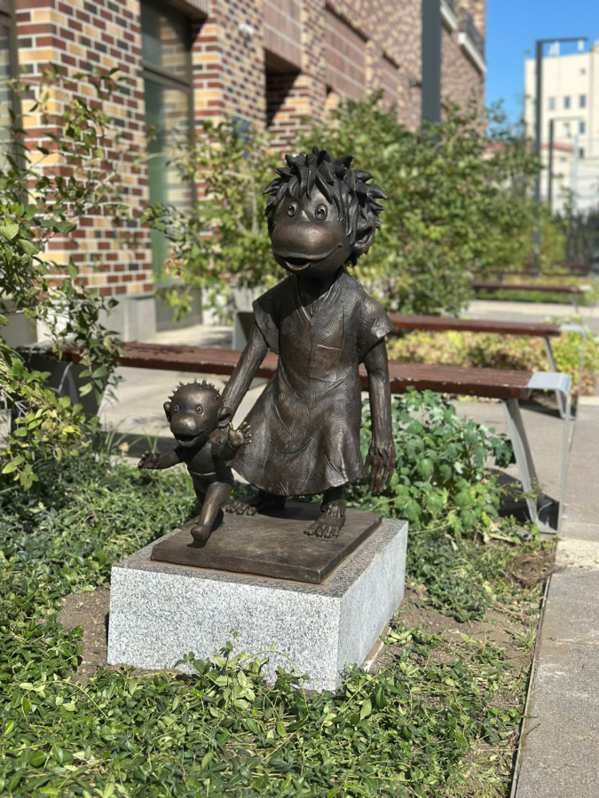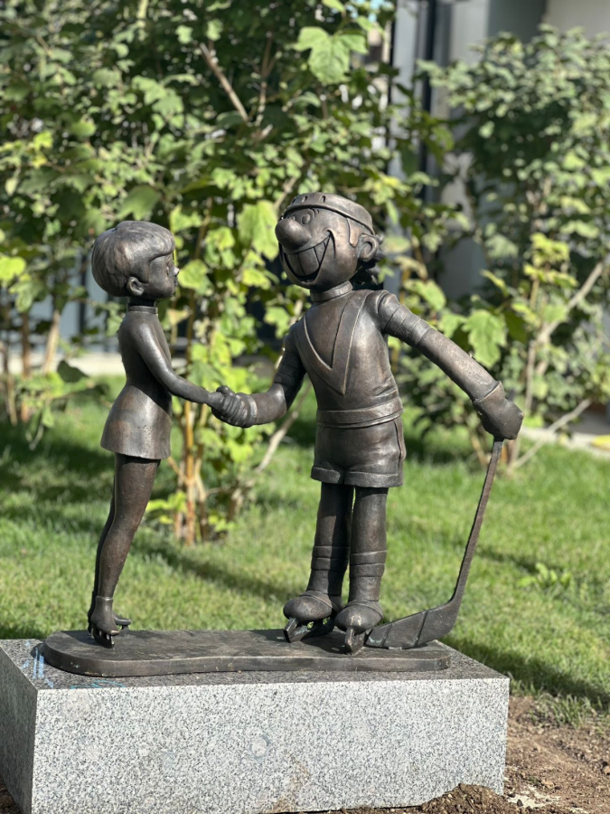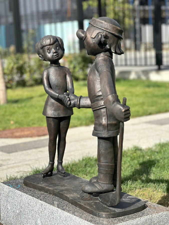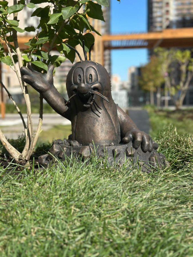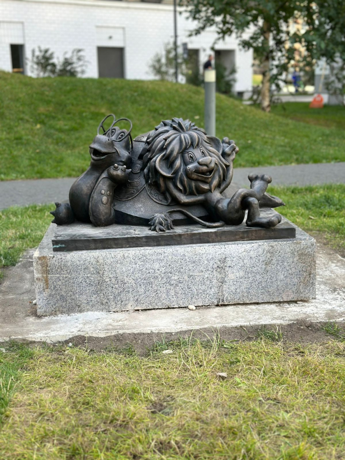 На территории ЖК установили 12 фигур: львенок и черепаха из мультика «Как львенок и черепаха песню пели», хоккеист и фигуристка из «Шайбу! Шайбу!», два боксера из «Метеор на ринге», Бонифаций из «Каникулы Бонифация», пять обезьянок и их мама из «Осторожно, обезьянки!», крокодил Гена и Чебурашка, а также Знайка и Гусля из «Незнайка учится».