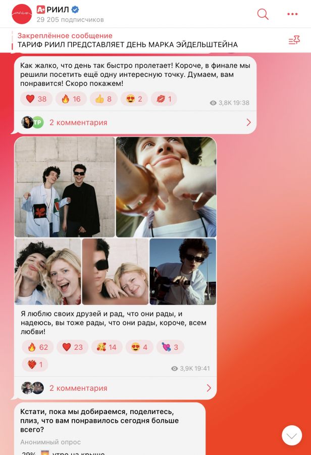Бренд дал Марку Эйдельштейну выходной, чтобы он прожил один день настоящей зумерской жизни. В это время читатели телеграм-канала решали, что ему делать дальше: голосовали, писали комментарии и буквально наблюдали за днем Марка и его приключениями. Главный герой в свою очередь записывал видео-кружочки, постил фото, монтировал вертикальные рилс-видео и проводил время так, как ему по-настоящему хочется.