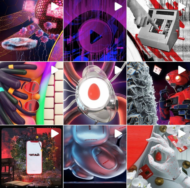 Все девять анимированных работ формируют на странице МТС в Instagram узнаваемый символ бренда — яйцо.
