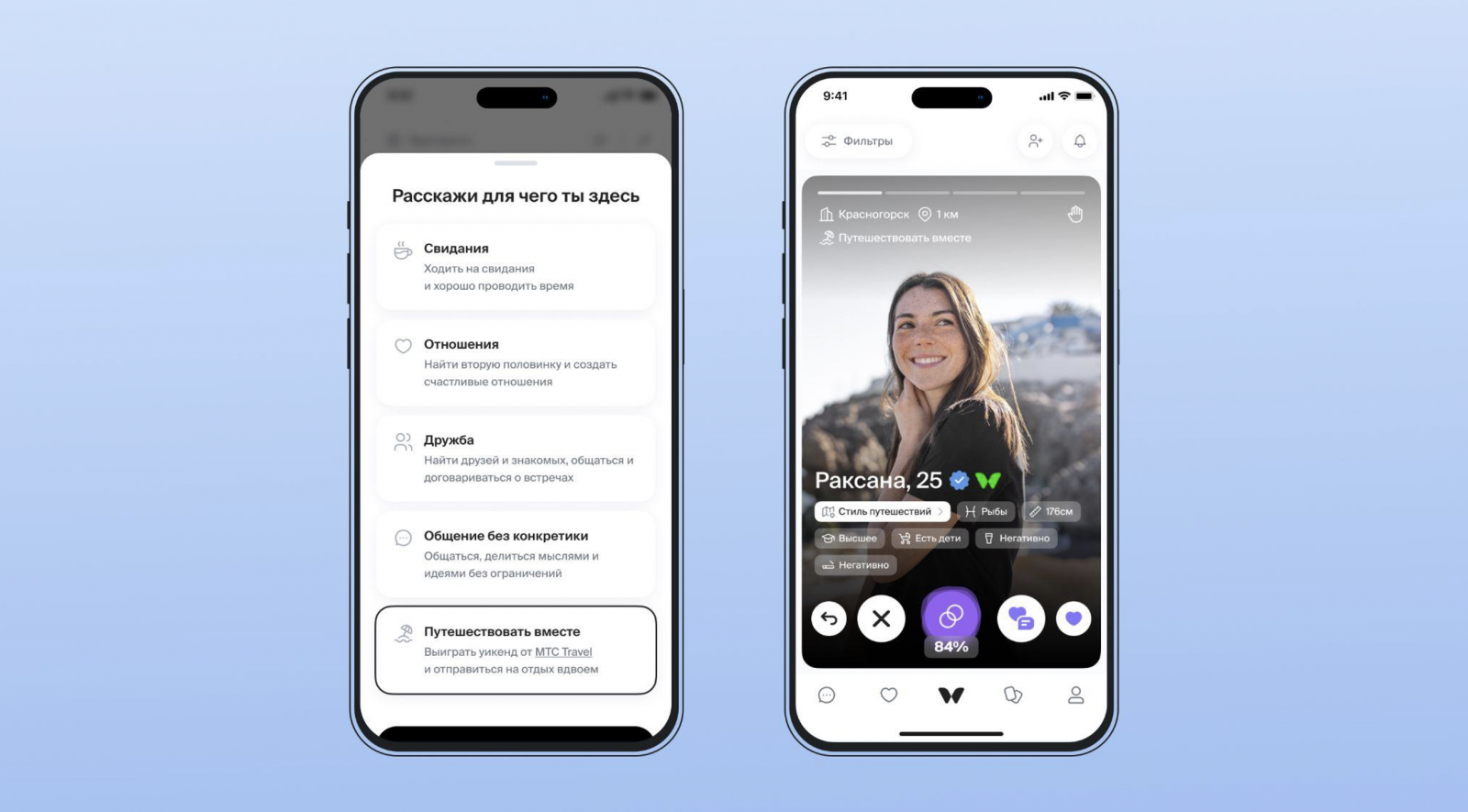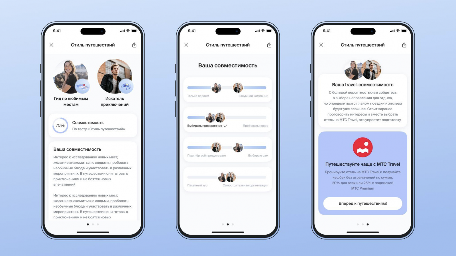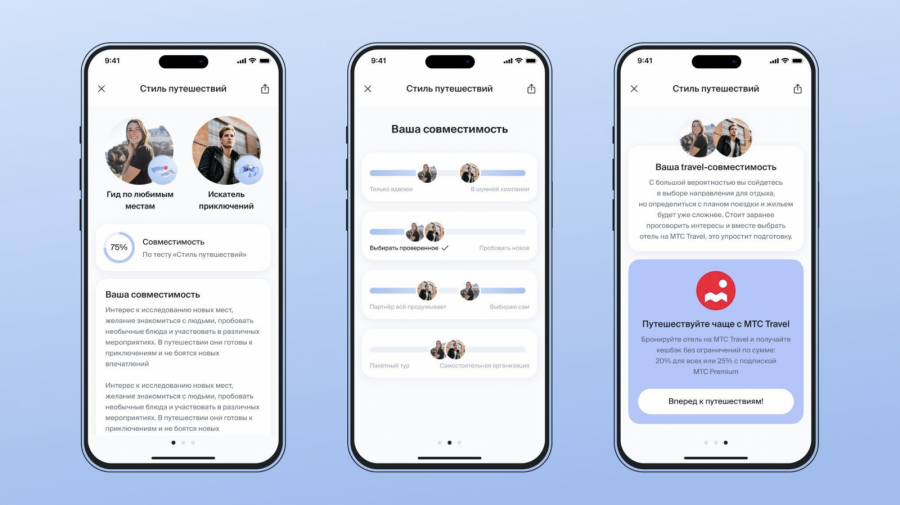Мы хотели не просто рассказать о сервисе МТС Travel, но и создать действительно полезный проект для пользователей Twinby. Для многих пар первое совместное путешествие — это проверка отношений. Наши механики позволяют потенциальным партнерам заранее узнать, насколько комфортной может быть их совместная поездка.