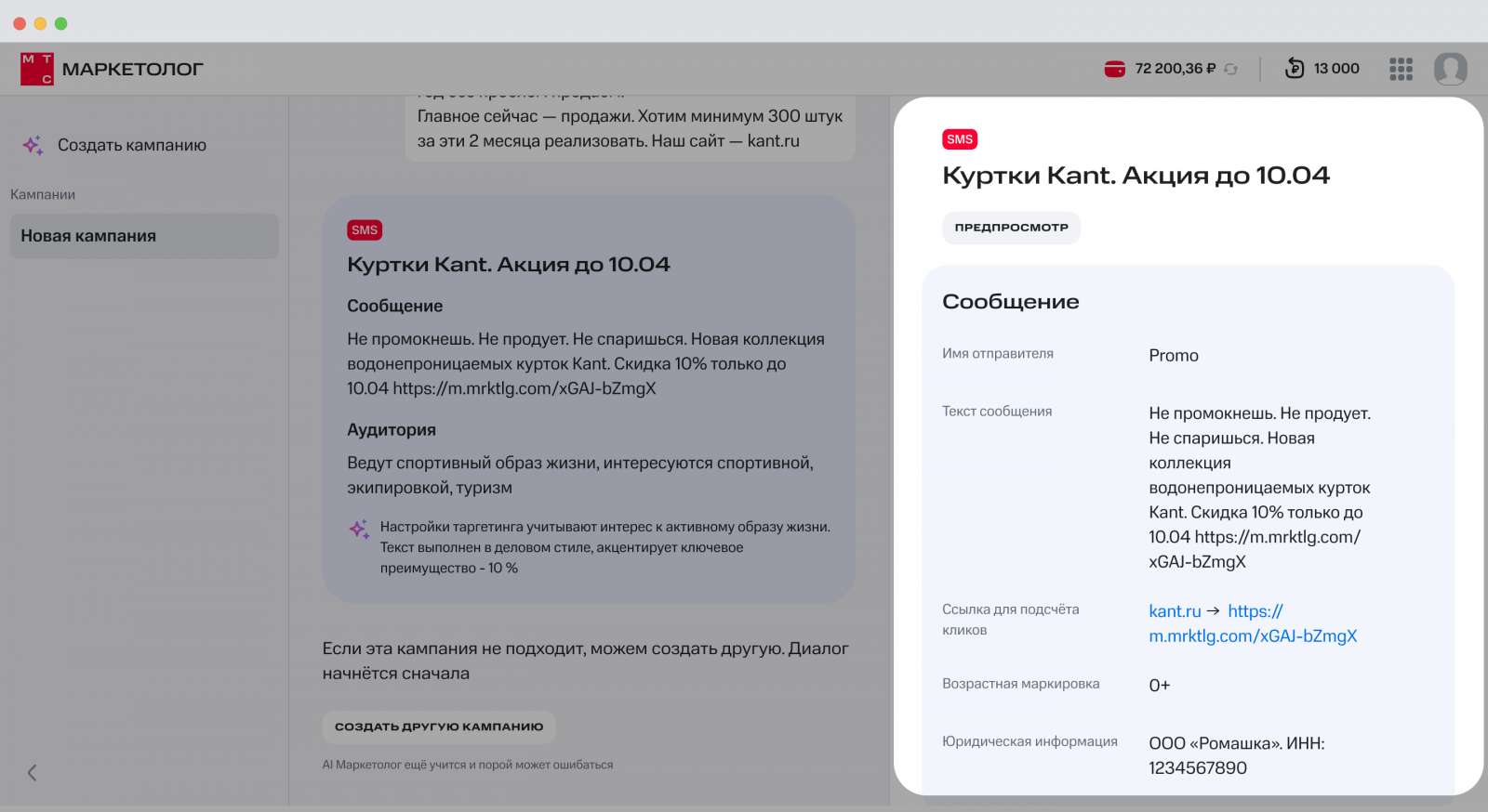 Функционал ИИ-агента предоставляется бесплатно на платформе «МТС Маркетолог», а оплата взимается только за размещение рекламы. Обновление будет доступно всем пользователям платформы — как физическим, так и юридическим лицам.