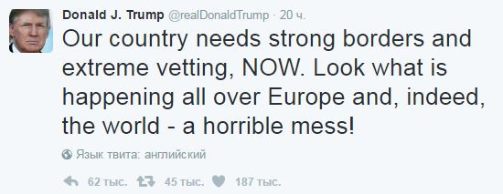 В воскресенье Трамп заявил, что за его решениями стоит не религия, а терроризм и безопасность страны. Америке нужны сильные границы и жесточайший досмотр, написал он в Twitter. Действия президента вызвали возмущение у политиков, общества и бизнеса. После целого дня неясности, хаоса и протестов в ряде аэропортов федеральный судья Бруклина, штат Нью-Йорк, постановил отложить вступление указа в силу. Американский союз за гражданские свободы добился временного разрешения задержанным путешественникам остаться в США, сообщает Reuters. Над исками о признании указа дискриминационны